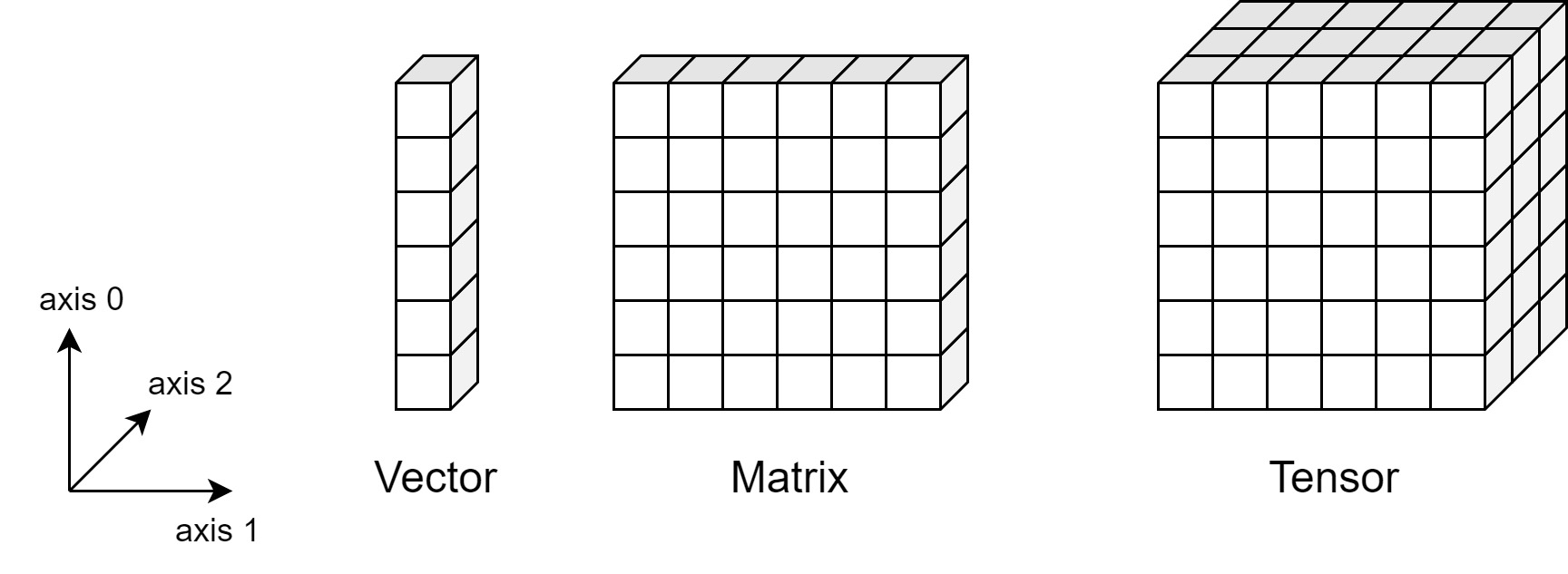 <figure><img src="https://content.gitbook.com/content/Z1AtAIaq9iuBBWNOucSy/blobs/Ux6h5F5q2biYz3y038Mw/image.png" alt=""><figcaption><p>Vectors, Matrices and Tensors</p></figcaption></figure>